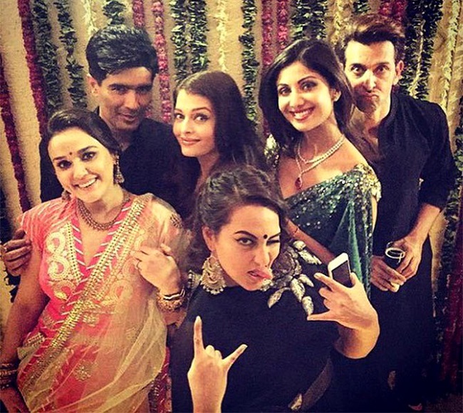 ऐश्वर्या राय बच्चन और प्रीति जिंटा और शिल्पा शेट्टी की दोस्ती काफी गहरी है। ये तीनों अक्सर साथ दिखाई देते हैं। यह तस्वीर है ऐश्वर्या के घर दिवाली पार्टी की जिसमें आप सोनाक्षी सिन्हा को भी देख सकते हैं।