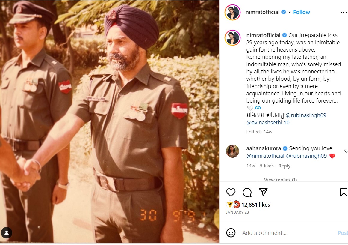 अक्षय कुमार की तरह निमृत कौर भी एक फौजी परिवार से आती हैं। उनके पिता फौजी थी। निमृत खुद भी कभी अपने पिता की तरह जाबांज फौजी बनना चाहती थीं, लेकिन बाद में उनकी रुचि ग्लैमर वर्ल्ड को लेकर बढ़ने लगी, जिसके बाद एक्ट्रेस ने मन बदल लिया। निमृत कौर ने वेब सीरीज 'द टेस्ट केस' में कैप्टन शिखा शर्मा का रोल प्ले किया था।