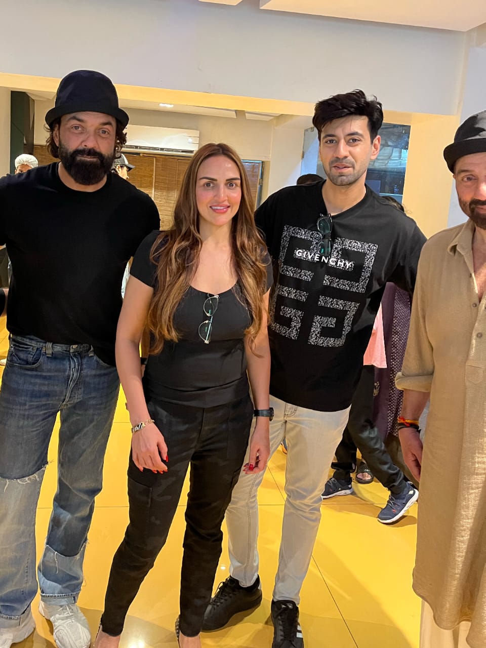गदर 2 की स्क्रीनिंग पर सनी देओल और बॉबी देओल मस्ती करते हुए दिखाई दिए। उनके साथ इवेंट पर बहने एशा देओल और अहाना देओल भी नजर आईं। दोनों ने भाइयों के साथ मिलकर मीडिया के सामने पोज भी दिए। अब सोशल मीडिया पर स्क्रीनिंग के कई सारे वीडियो वायरल हो रहे है।
