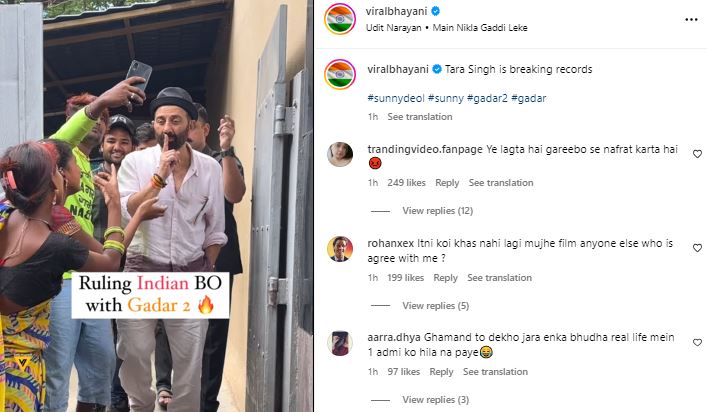 एक अन्य यूजर ने लिखा, "आ गया घमंड। बॉलीवुड वालों की प्रॉब्लम ही ये है"। एक अन्य यूजर ने सनी देओल पर सवाल दागते हुए लिखा, "सनी देओल तो ऐसे नहीं थे, गरीब के साथ एक फोटो ले लेते, तो आपका क्या जाता"। आपको बता दें कि सनी देओल की फिल्म ने घरेलू बॉक्स ऑफिस पर 134.88 करोड़ का टोटल बिजनेस किया है।