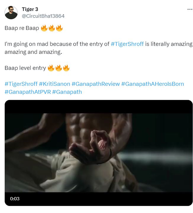 दूसरे यूजर ने लिखा, "बाप रे बाप, मैं टाइगर श्रॉफ की एंट्री देखकर ही पागल हो गया हूं, क्योंकि ये सच में बहुत ही शानदार है"।