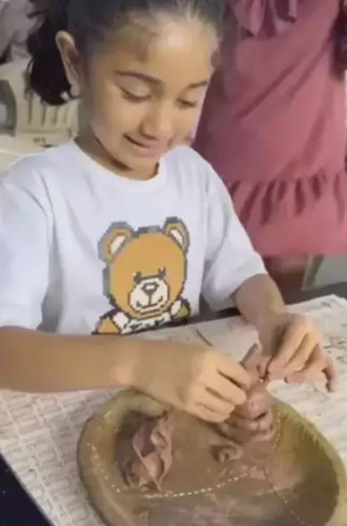 छह साल की अल्लू आरहा ने बनाई 'गणपति' की मूर्ति
