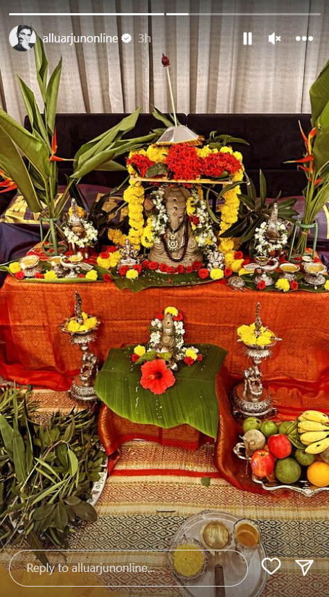 राम चरण (Ram Charan) ने अलावा साउथ एक्टर अल्लू अर्जुन ने भी अपनी इंस्टाग्राम स्टोरी पर बप्पा की एक झलक साझा की है।