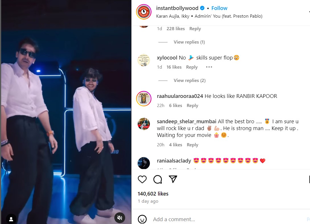 एक ने उनकी तुलना रणबीर कपूर (Ranbir Kapoor) से तक की है। यूजर ने कमेंट किया, 'आप रणबीर कपूर जैसे लग रहे हो।' एक अन्य ने लिखा, 'ऑल द बेस्ट ब्रदर। मुझे यकीन है कि आप अपने पिता की तरह ही रॉक करोगे'।