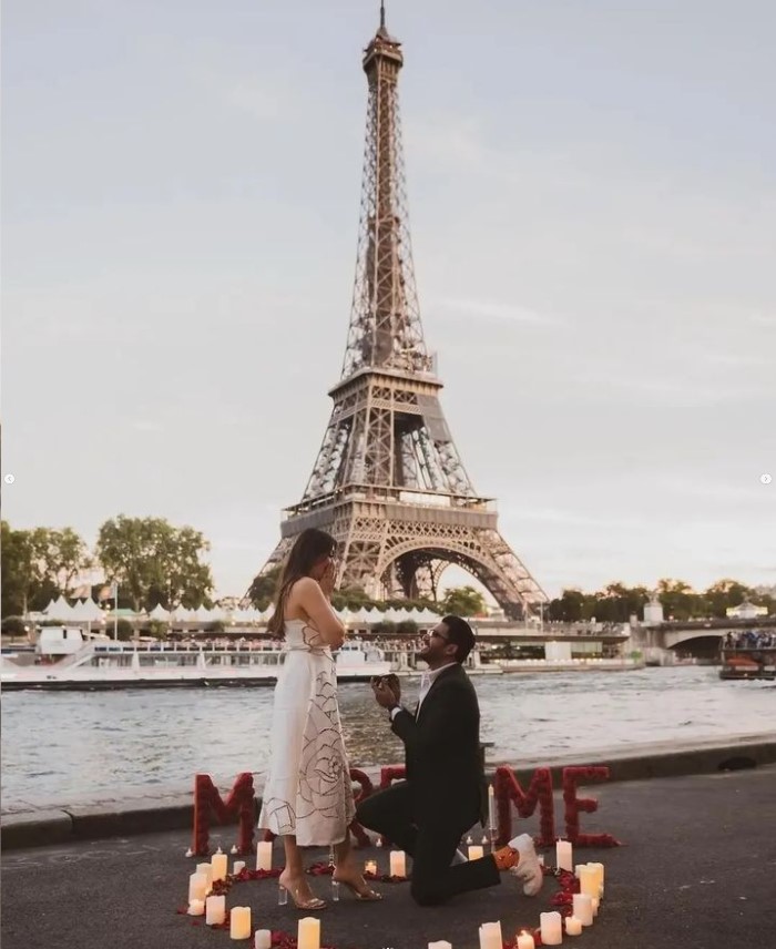 हंसिका मोटवानी ने बुधवार को अपने आधिकारिक इंस्टाग्राम अकाउंट पर कुछ तस्वीरें शेयर की थी। जिनमें एक्ट्रेस के मंगेतर सोहेल कथुरिया एफिल टावर के सामने उन्हें प्रपोज करते हुए नजर आए थे। हंसिका के सामने हाथ में अंगूठी लिए सोहेल घुटने के बल बैठ उनसे अपने प्यार का इजहार करते हुए दिखे थे। इन तस्वीरों के सामने आने के बाद से उनकी सगाई की बात पक्की मानी जा रही थी।