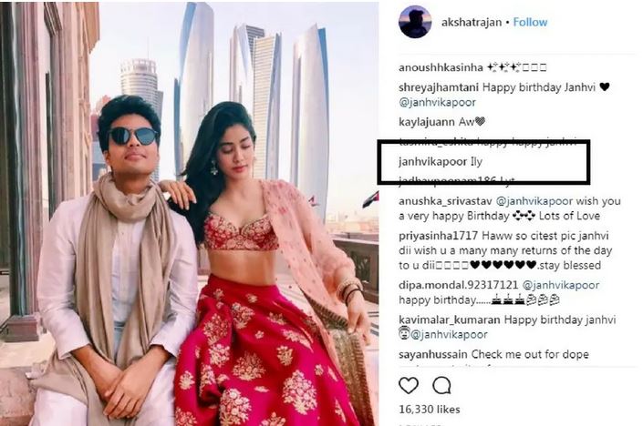 तीन साल पहले जाह्नवी कपूर के जन्मदिन पर कुछ ऐसा हुआ था कि सभी उन्हें बर्थडे के अलावा किसी और ही चीज की बधाई देने लगे थे। दरअसल, साल 2018 को जाह्नवी को एक 'स्पेशल बर्थडे विश' मिली थी। उन्हें ये बधाई उनके दोस्त अक्षत रंजन ने दी थी। अक्षत ने जाह्नवी संग अपनी एक तस्वीर शेयर कर एक्ट्रेस को विश किया था। इस फोटो पर अक्षत ने 'हैप्पी बर्थडे' लिखा और एक दिल वाला इमोजी भी बनाई थी। लेकिन जाह्नवी ने इसके जवाब में थैंक्यू या शुक्रिया न कहते हुए ILY यानी आई लव यू लिखा था।