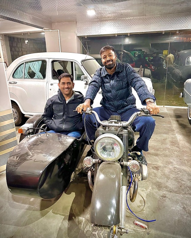 Hardik Pandya एम एस धोनी के साथ 'जय-वीरू' की तरह पुरानी बुलेट चलाते आए नजर, दिया आईकॉनिक पोज