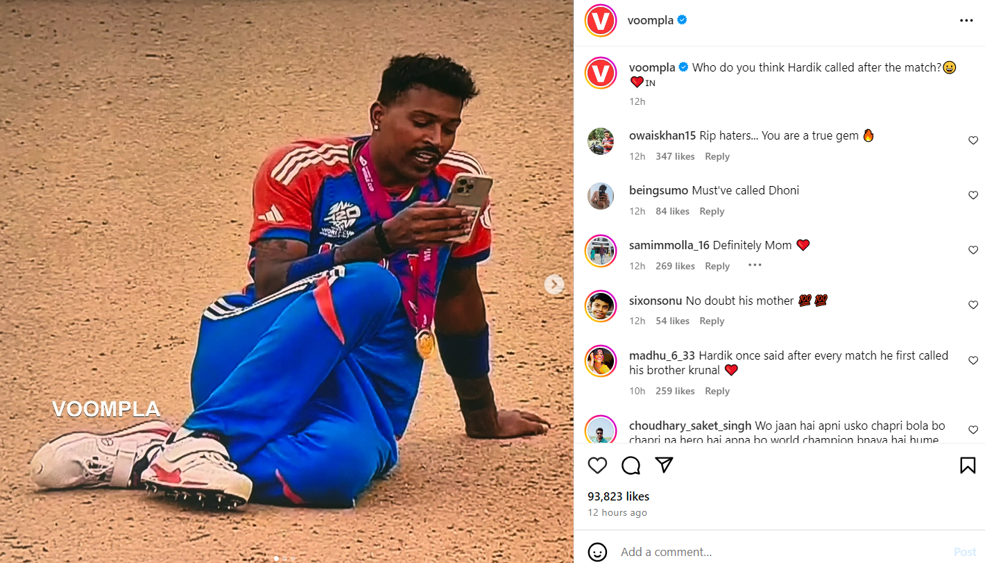 इस फोटो के कमेंट सेक्शन में बहुत से लोगों ने अपने रिएक्शन भी दिए हैं। कई लोगों ने लिखा है कि शायद हार्दिक नताशा से वीडियो कॉल पर बात कर रहे हैं। जबकि कुछ ने लिखा है कि हार्दिक पांड्या अपनी मां या फिर अपने भाई (क्रुणाल पांड्या) के वीडियो कॉल पर बात कर रहे है। एक सोशल मीडिया यूजर ने लिखा- हार्दिक ने एक बार कहा था कि वो हर मैच के बाद अपने भाई क्रुणाल को कॉल करते हैं।