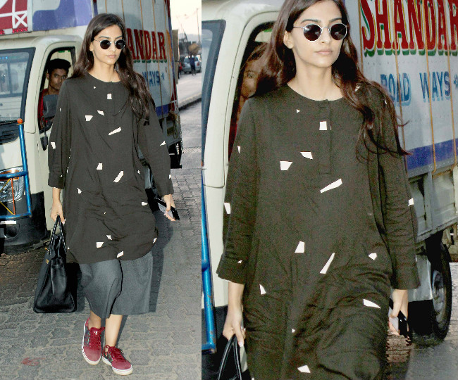 सोनम कपूर हमेशा ही एक नए अवतार में नज़र आती है और इस समर को कूल बनाए रखने के लिए सोनम ने चुना कपड़ों को लूज़ रखना। डार्क ग्रीन वाइट पैच का लॉन्ग एंड लूज़ टॉप और साथ में लूज़-डार्क पैंट्स और इसपर सन-ग्लासेस! सबसे इंट्रेस्टिंग हैं रेड शूज़!