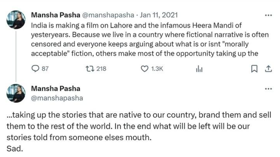 जब साल 2021 में संजय लीला भंसाली ने अपनी वेब सीरीज 'हीरामंडी' की घोषणा की थी, तो एक्ट्रेस उषा शाह, मंशा पाशा और हिना तरीन ने इस पर आपत्ति जताई थी।