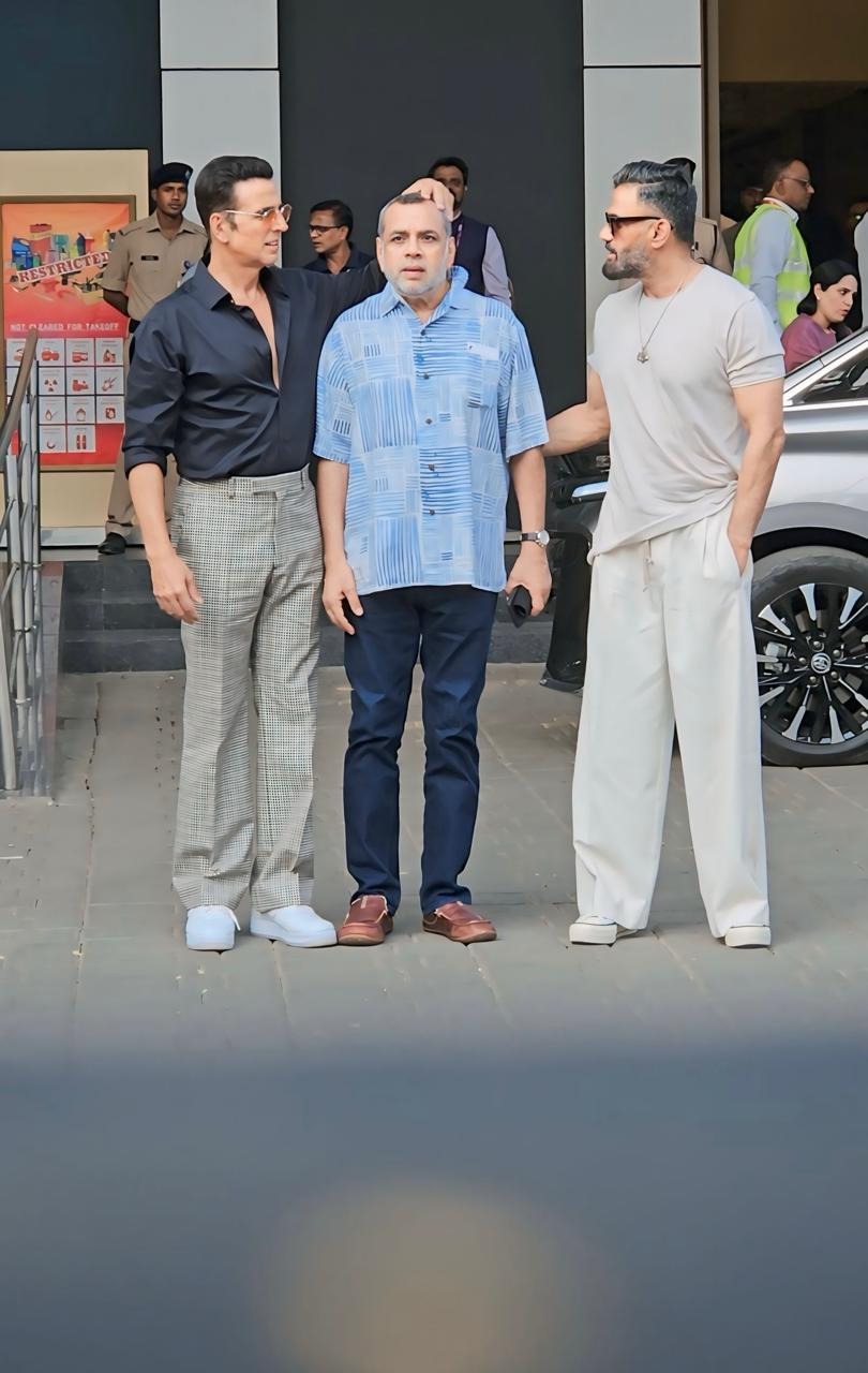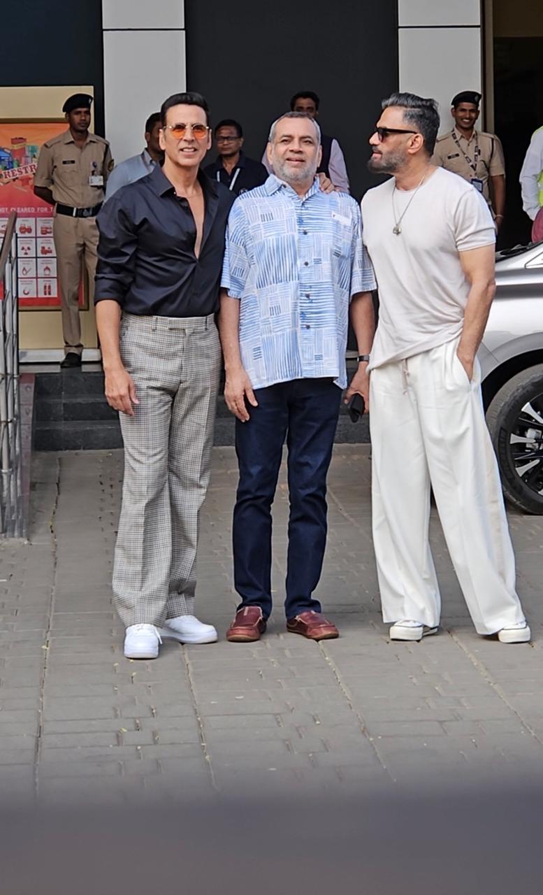 इस बीच अक्षय कुमार (Akshay Kumar), परेश रावल और सुनील शेट्टी को हाल ही में एक साथ स्पॉट किया गया है। सेलेब्स फोटोग्राफर पल्लव पालीवाल ने इन तीनों फिल्म कलाकारों की लेटेस्ट तस्वीरों को शेयर किया है। जिनमें आप देख सकते हैं कि ये तीनों अभिनेता एक साथ दिखाई दे रहे हैं।