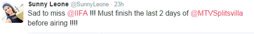 दरअसल, सनी लियोन इस दौरान 'एमटीवी स्पिल्ट्सविला' की शूटिंग में बिजी रहेंगी। वह इस रियलिटी शो को होस्ट करने वाली हैं। ये रहा उनका ट्वीट।