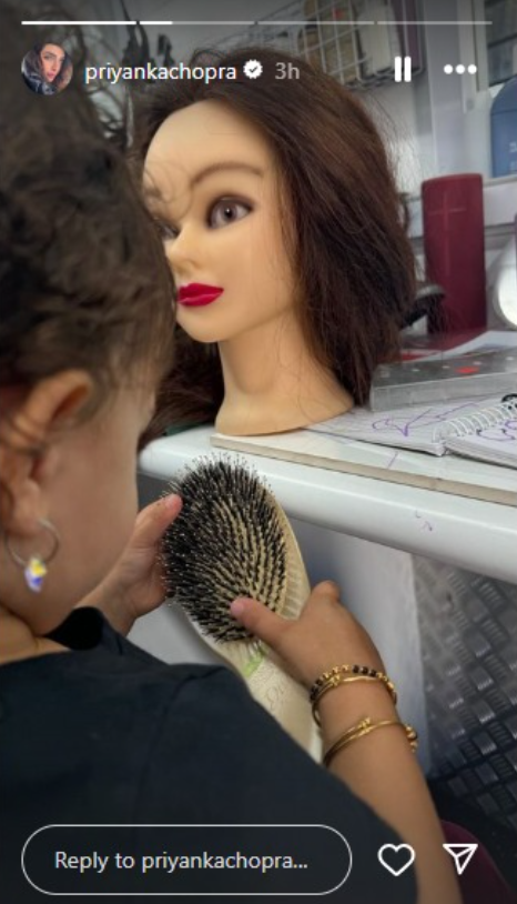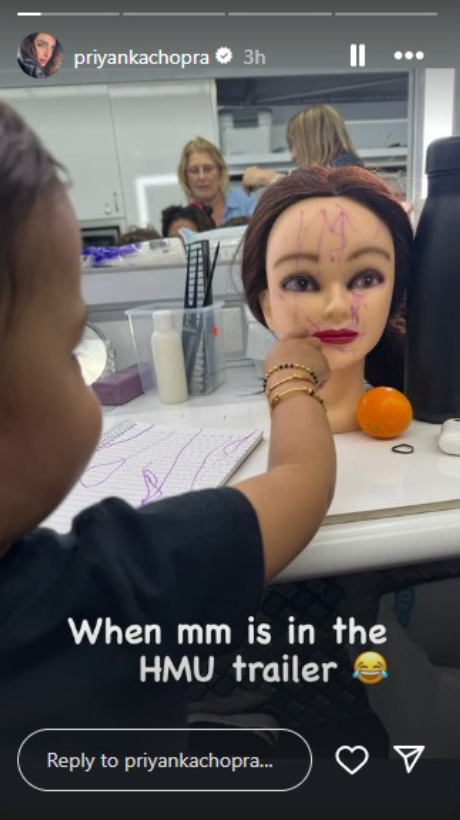 हाल ही में प्रियंका ने इंस्टाग्राम स्टोरीज में मालती की कुछ तस्वीरें मेकअप रूम से शेयर की हैं। इन तस्वीरों में मालती की क्यूटनेस साफ देखी जा सकती है। पहली तस्वीर में मालती मेज पर रखे एक डमी के चेहरे का स्केच करते हुए दिखाई दे रही हैं। प्रियंका ने फोटो के साथ टेक्स्ट लिखकर शेयर किया,"जब MM एचएमयू ट्रेलर में होती है।"