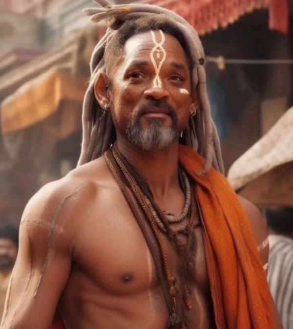 विल स्मिथ का हुलिया हूबहू किसी साधु जैसा ही लग रहा है। हो भी क्यों न। आखिर ये AI का कमाल है।
