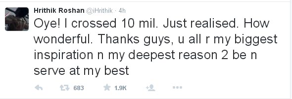 ट्विटर पर रितिक रोशन के फॉलोअर्स एक करोड़ पार