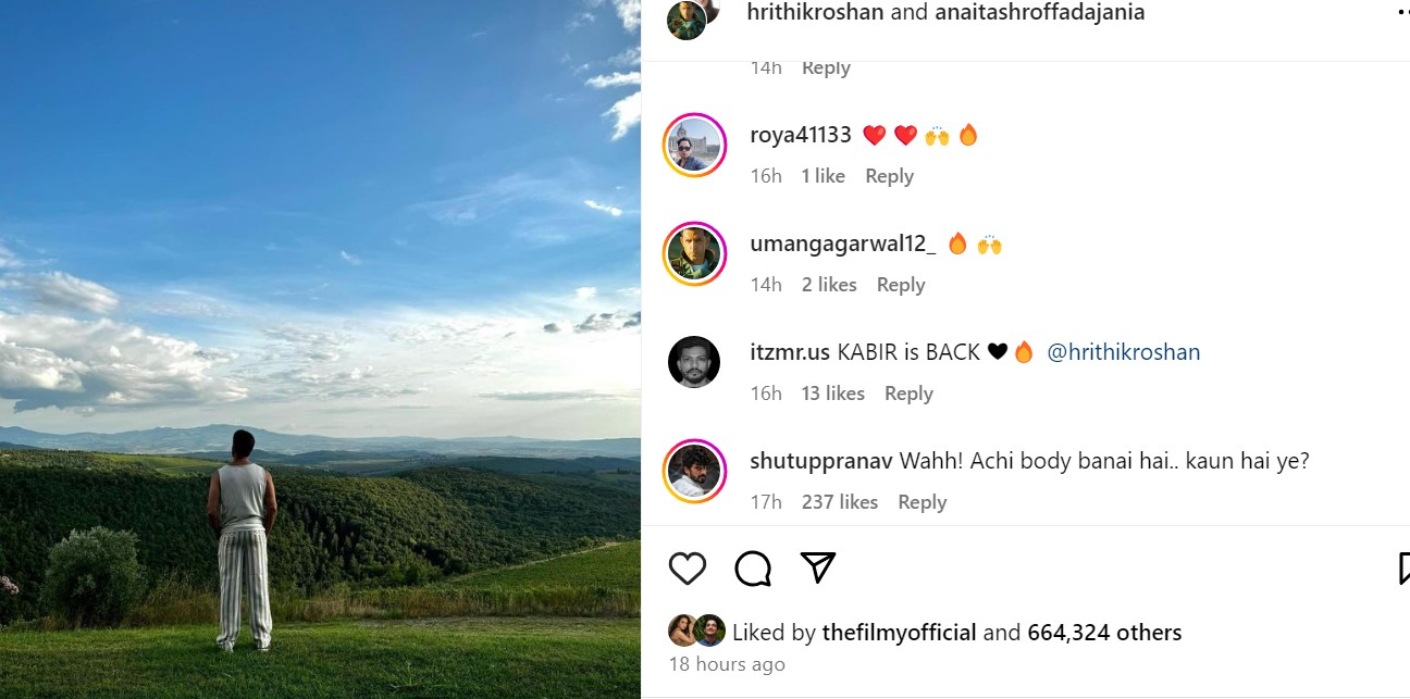 इस पोस्ट पर ढेर सारे कमेंट के बीच सबा आजाद के कमेंट ने लोगों का ध्यान खींचा, जिन्होंने लिखा, 'माय लव'। वहीं, फैंस की इस फिल्म की रिलीज को लेकर बेताबी बढ़ गई है। एक ने लिखा, 'कबीर इज बैक।'