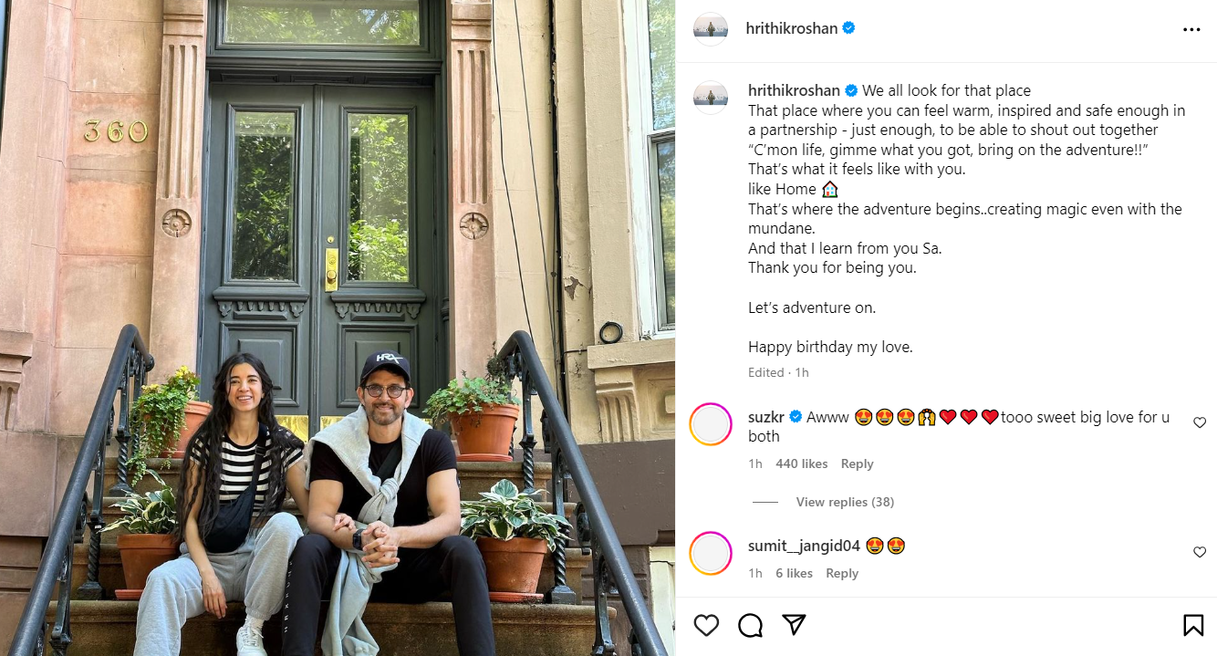 Hrithik Roshan ने गर्लफ्रेंड Saba Azad को रोमांटिक अंदाज में किया विश, एक्स वाइफ सुजैन खान ने कर दिया ऐसा कमेंट