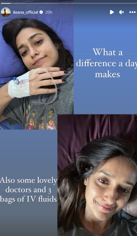 इलियाना डिक्रूज ने हाल ही में कुछ तस्वीरें शेयर कीं, जिसमें उन्होंने दिखाया कि उन्हें फ्लूइड्स दिए गए हैं। एक्ट्रेस ने बताया कि उन्हें आईवी फ्लूइड के तीन बैग चढ़ाए गए।