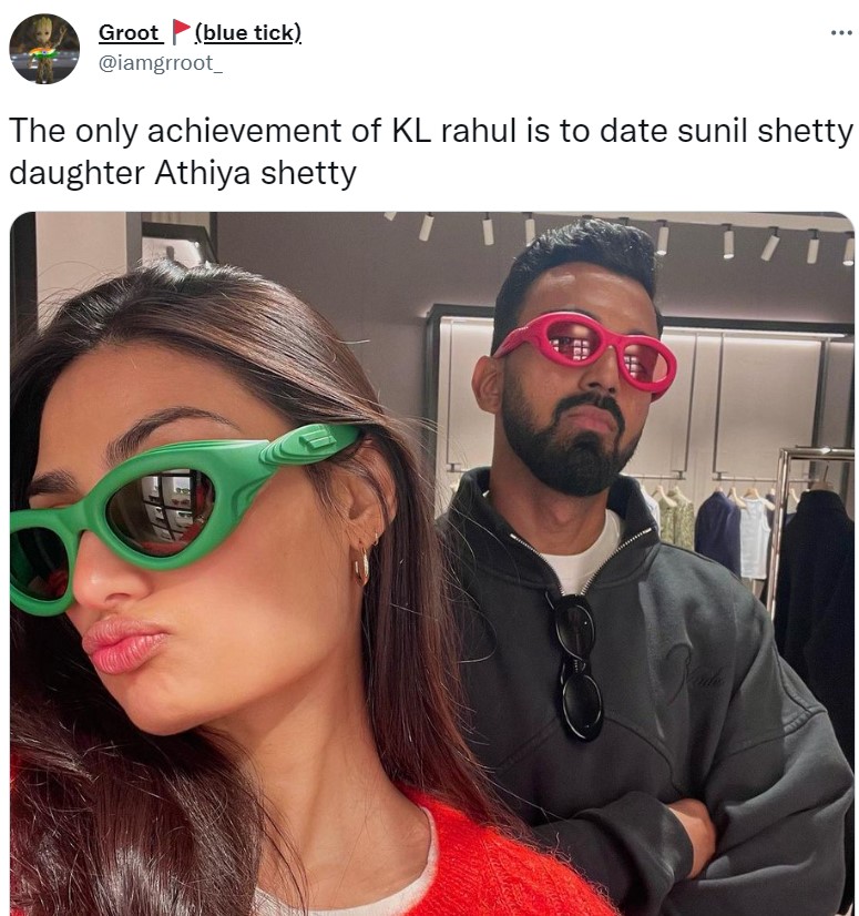 एक अन्य यूजर ने कहा, "केएल राहुल के पास सिर्फ एक ही अचीवमेंट है कि वह सुनील शेट्टी की बेटी को डेट कर रहे हैं।"