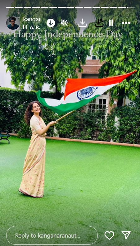 एक्ट्रेस कंगना रनौत ने भी तिरंगा झंडा लहराते हुए फोटो शेयर की।