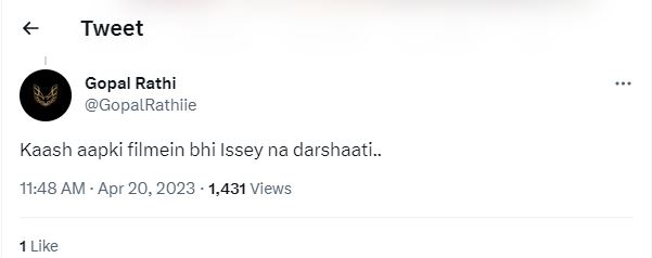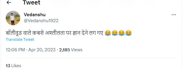 कंगना के इस ट्वीट के बाद कुछ लोग तो उनकी बातों को सही बता रहे हैं, लेकिन कुछ यूजर्स ऐसे हैं, जो अश्लीलता फैलाने का ठीकरा बॉलीवुड पर फोड़ते हुए नजर आ रहा हैं। एक यूजर ने लिखा, 'बॉलीवुड में लोग कब से अश्लीलता पर ज्ञान देने लग गए हैं। दूसरे यूजर ने लिखा, 'आप बॉलीवुड वालों का ही इन्फ्लुएंस है ये'। एक अन्य यूजर ने लिखा, 'काश आपकी फिल्में भी ये नहीं दर्शाती'।
