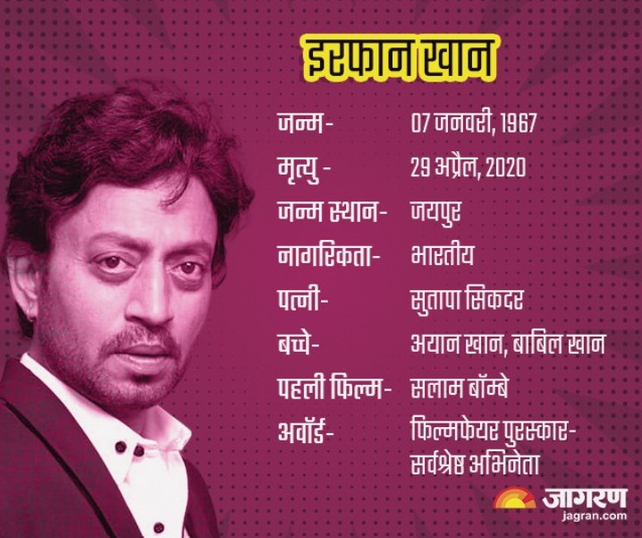 हिंदी फिल्मों से लेकर अंग्रेजी फिल्मों तक अपनी छाप छोड़ने वाले अभिनेता रहे इरफान खान ने अपने अभिनय के जरिये हर वर्ग के लोगों को प्रभावित किया। उनकी गिनती बॉलीवुड के उन मंझे हुए कलाकारों में होती थी, जो किसी भी रोल को इतनी बखूबी निभाते थे कि वह असल जिंदगी का पात्र ही लगे। इरफान फिल्मों के साथ-साथ टीवी की दुनिया में भी सक्रिय रहे।