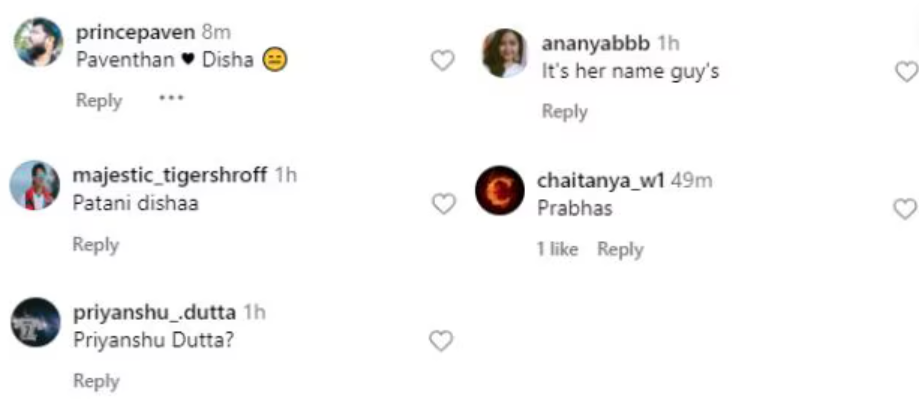 फैंस इसे दिशा के कल्कि को-एक्टर प्रभास से जोड़कर देख रहे हैं। एक तरफ जहां कई लोगों का मानना है कि शायद दिशा ने अपना ही नाम रिवर्स करके पीडी लिखवा लिया है। वहीं कुछ यूजर्स ने उस पर प्रभास डार्लिंग लिखकर कमेंट किया।