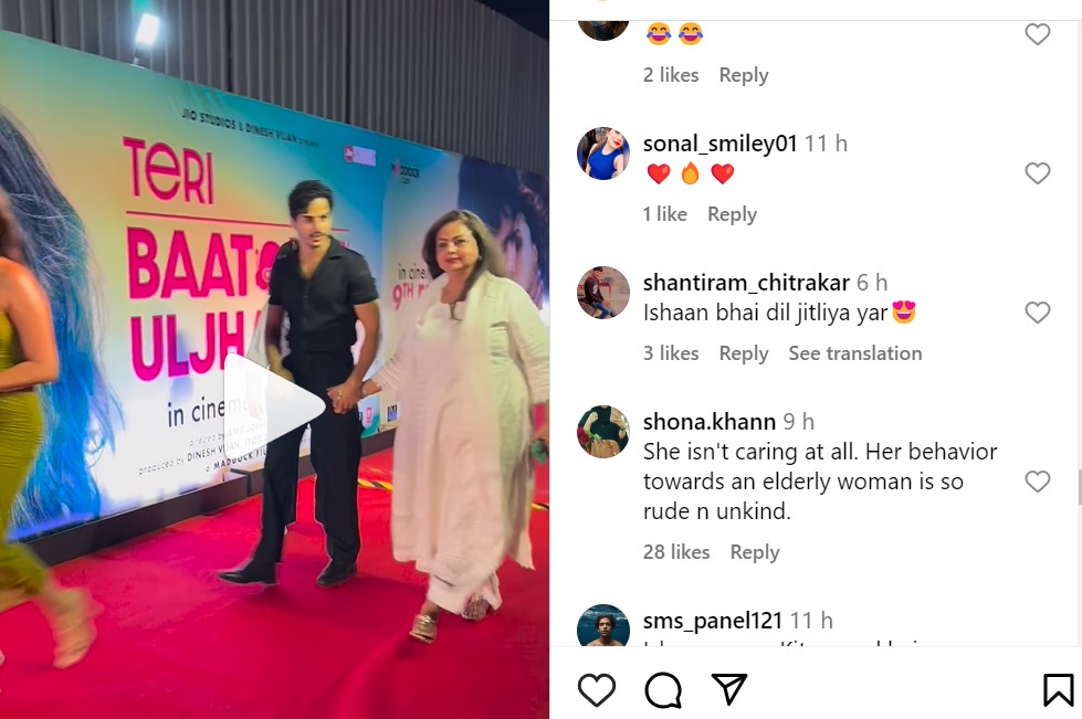 ईशान खट्टर की ये बात अब सोशल मीडिया पर चर्चा बटोर रही है और एक्टर की तारीफ हो रही है। ईशान के वीडियो पर कमेंट करते हुए एक यूजर ने कहा, वो उसे मां से दूर खींच रही है और उसने बिल्कुल सही चीज की ये बोलकर- तुम जा सकती हो। दूसरे यूजर ने कहा, उसने दोनों लेडीज को अच्छे से संभाला।