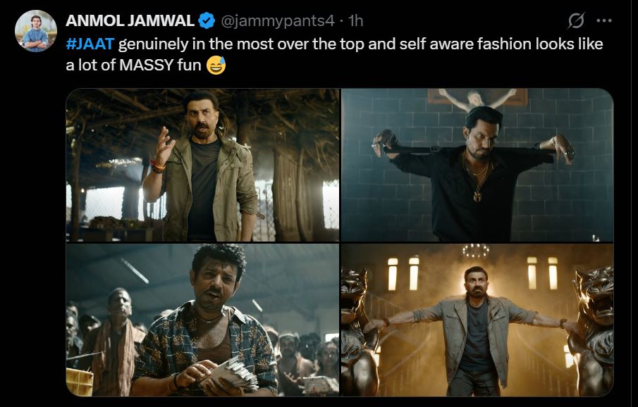 जाट के ट्रेलर पर रिएक्शन देते हुए एक यूजर ने लिखा, "जाट वाकई टॉप और आत्म-जागरूक फैशन में बहुत मजेदार लग रहा है।" एक ने तारीफ में कहा, "ओह भाई क्या सीन है।"