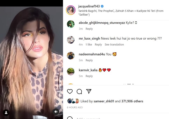 जैकलीन फर्नांडिस की वीडियो इंस्टाग्राम पर वायरल हो गई है। इसे 6 घंटे में पौने चार लाख के करीब लाइक्स मिले हैं। वहीं, वीडियो पर तीन हजार के करीब कमेंट किए गए हैं। कई लोगों ने वीडियो पर गॉर्जियस, अमेजिंग, ब्यूटीफुल, वाओ जैसे कमेंट किए हैं। वहीं, कई लोगों ने इस पर दिल और आग की इमोजी भी शेयर की है। हालांकि, कई लोगों ने उन्हें ट्रोल भी किया है।