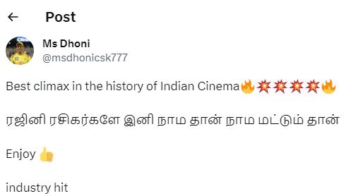 एक यूजर ने 'जेलर' के क्लाइमेक्स की तारीफ करते हुए लिखा, "इंडियन सिनेमा के इतिहास में ये आज तक का सबसे बेस्ट क्लाइमैक्स है"।
