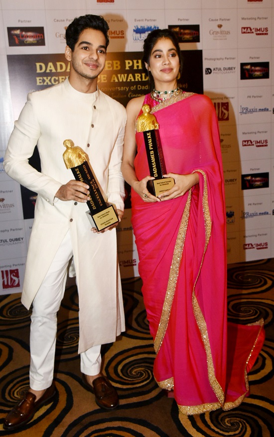 जाह्नवी कपूर के साथ ईशान खट्टर को भी दादा साहब फाल्के एक्सीलेंस अवॉर्ड प्रदान किया गया! इस दौरान ईशान और जाह्नवी कपूर बेहद उत्साहित नज़र आये।