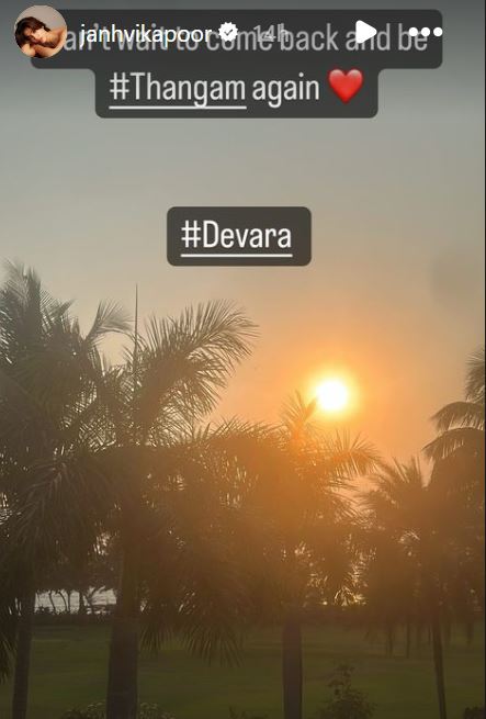 जाह्नवी कपूर ने खूबसूरत व्यू की फोटो शेयर की है और देवरा को लेकर अपनी एक्साइटमेंट जाहिर की है। फिर एक्ट्रेस ने कहा, "मैं फिर से वापस आने और थंगम बनने का बेसब्री से इंतजार कर रही हूं। #देवरा।"
