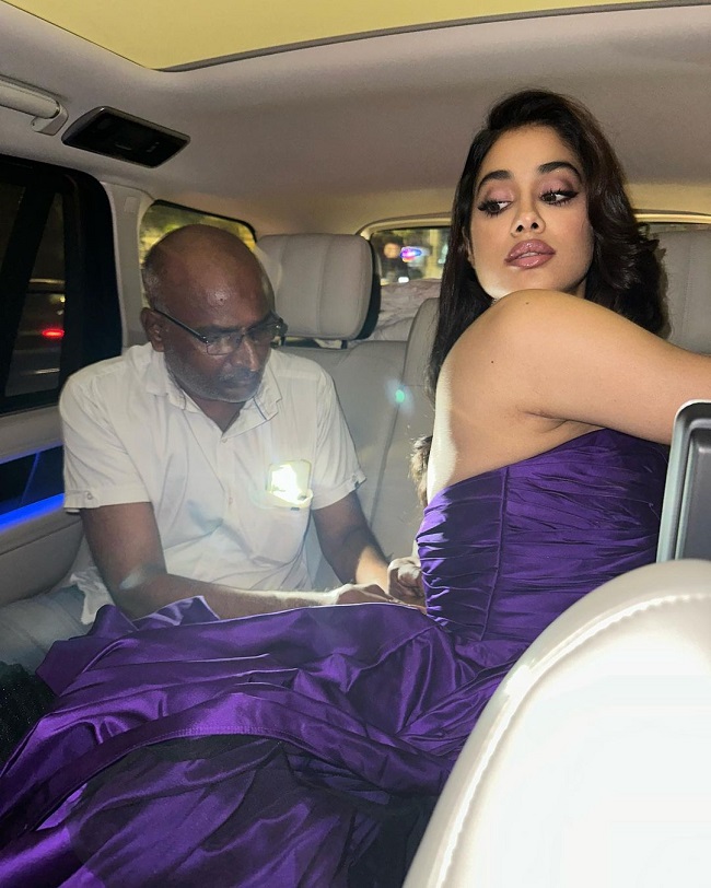 पहली तस्वीर में जाह्नवी कपूर खिलखिला कर मुस्कुरा रही है। वह खड़ी है। वहीं, डिजाइनर उन्हें तैयार कर रही है। दूसरी तस्वीर में वह मिरर सेल्फी लेती नजर आ रही है। इसमें उनका फिगर भी नजर आ रहा है। तीसरी तस्वीर वह कोका-कोला पीती हुईं नजर आ रही हैं। चौथी फोटो में उन्हें गाड़ी से उतरते हुए देखा जा सकता है। सातवीं फोटो में एक गाड़ी में बैठा दर्जी उनके गाउन को सी रहा है।