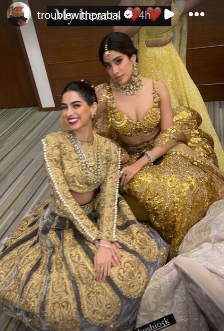 फैशन डिजाइनर प्रबल गुरुंग ने इंस्टाग्राम स्टोरी पर अनंत अंबानी और राधिका मर्चेंट की शादी से अनदेखी तस्वीरें शेयर की हैं। एक फोटो में उन्होंने कपूर सिस्टर्स जाह्नवी और खुशी की फोटो शेयर कर लिखा है, "मेरी ब्यूटीज।" प्रबल ने एक और फोटो शेयर की है, जिसमें खुशी और जाह्नवी के साथ वेदांग भी दिख रहे हैं।