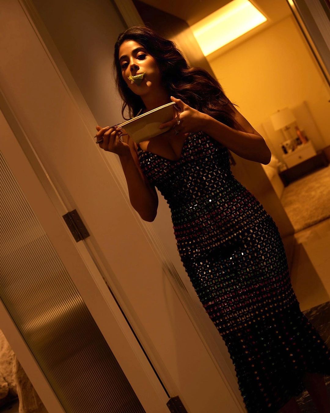 अपनी बेबाक खूबसूरती के दम पर एक्ट्रेस हर किसी का ध्यान खींच रही हैं। इतना नहीं इन फोटो में जाह्नवी बेहद फूडी होती दिखाई दे रही हैं। जिसका अंदाजा आप एक्ट्रेस के हाथ में खाना और कोका कोला के जरिए लगा सकते हैं।