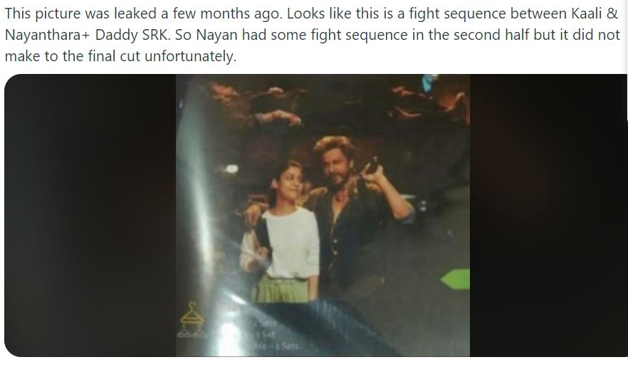 इस फोटो को शेयर कर यूजर ने लिखा, "ऐसा लग रहा है कि फिल्म से ये सीन हटाया गया है"। आपको बता दें कि शाह रुख खान-नयनतारा की फिल्म ने सोमवार को ही वर्ल्डवाइड 600 करोड़ का आंकड़ा पार कर लिया था।