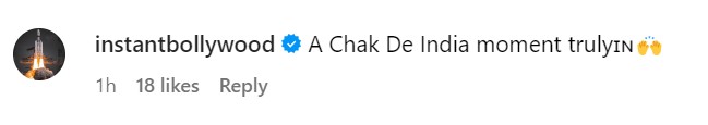इस ट्वीट में कई सारे कमेंट में फैंस ने उस सीन का वीडियो मेंशन किया है और शाह रुख को इसके लिए बधाई दी है। एक यूजर ने कमेंट 'चक दे इंडिया' के डायलॉग को लिखा है कि- ''मुझे सिर्फ एक नाम सुनाई देता है और वो है इंडिया।''