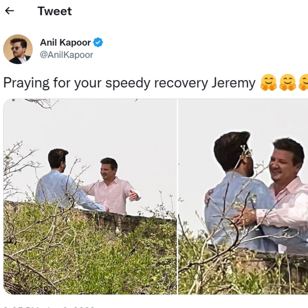 इस पोस्ट पर अभिनेता अनिल कपूर ने 5 दिल वाले इमोजी बनाए हैं। बता दें इससे पहले भी एक्टर ने सोशल मीडिया पर पोस्ट किया था। अनिल कपूर ने ट्वीट कर लिखा था- जेरेमी रेनर के जल्द ठीक होने की कामना कर रहा हूं।' इसी के साथ उन्होंने दो फोटो शेयर की है, जिनमें वह जेरेमी को गले मिलते दिखाई दे रहे थे। आपको याद दिला दे जेरेमी रेनर और अनिल कपूर ने एक साथ 'मिशन इम्पॉसिबल-घोस्ट प्रोटोकॉल' में काम किया था।