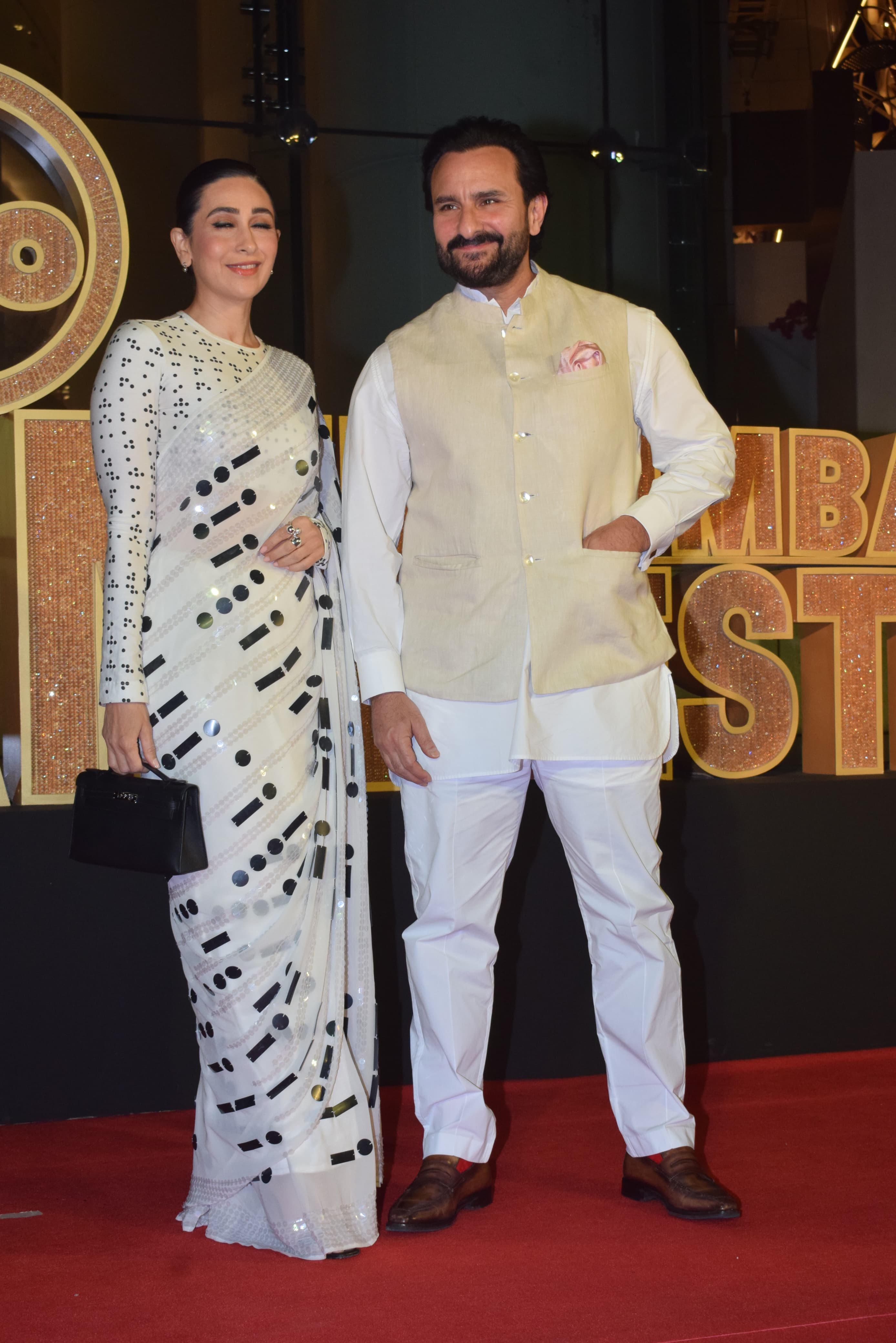 इस मेगा इवेंट में कई सितारों का जमावड़ा देखने को मिला। सैफ अली खान और करिश्मा कपूर भी इस इवेंट में साथ में नजर आए। सैफ अली खान जहां व्हाइट कलर के कुर्ते पजामे में दिखाई दिए। वहीं, एक्ट्रेस करिश्मा कपूर व्हाइट कलर की ब्लैक प्रिंट वाली साड़ी पहने खूबसूरत लग रही थीं।