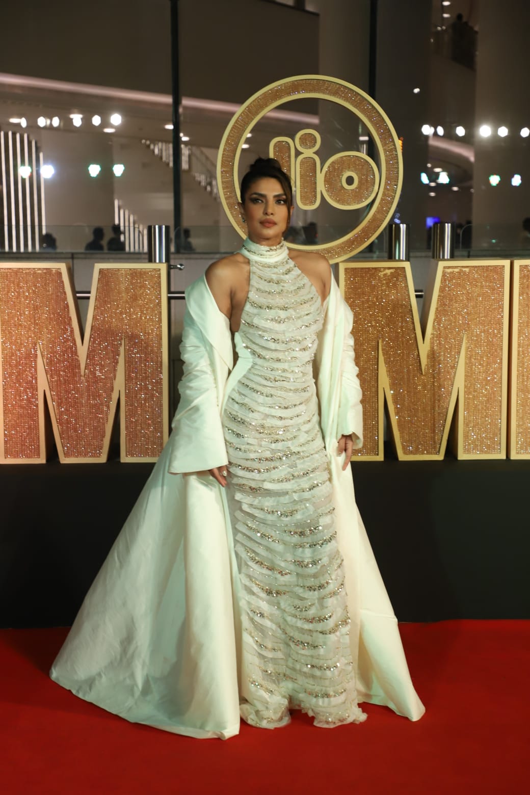 प्रियंका चोपड़ा जियो मामी फिल्म फेस्टिवल की चेयरपर्सन हैं और ओपनिंग नाइट में हिस्सा लेने के लिए वह शुक्रवार को ही मुंबई आई हैं। इस दौरान उन्होंने इस इवेंट में व्हाइट कलर का गाउन पहना है। गाउन के ऊपर उन्होंने मैचिंग श्रग भी पहना।