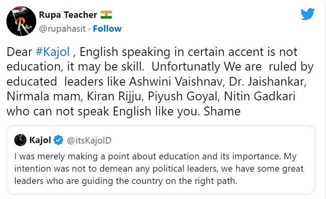 काजोल ने नेताओं की शिक्षा को लेकर किए कमेंट पर क्या सफाई दी है?