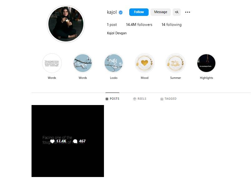 इसके फोटो के साथ काजोल ने कैप्शन में लिखा, "सोशल मीडिया से ब्रेक ले रही हूं"। हालांकि, इंस्टाग्राम पर ये पोस्ट शेयर करने के साथ ही काजोल ने अपनी पुरानी सारी फोटोज भी हटा दी। आपको बता दें कि काजोल को अपने फैशन और बेटी नीसा देवगन को खूब ट्रोल किया जाता है।