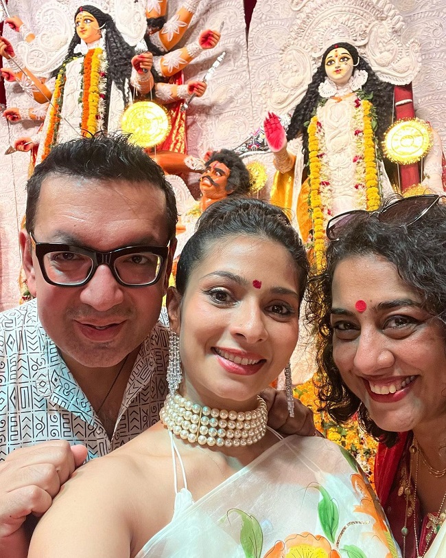 तनीषा मुखर्जी ने तस्वीरें शेयर करते हुए लिखा है, 'सप्तमी हमेशा ही खास रही है'
