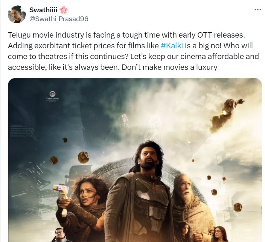 एक अन्य ने कमेंट किया, 'तेलुगू इंडस्ट्री वैसे ही ओटीटी रिलीज को लेकर बुरे दौर से गुजर रही है। कल्कि जैसी फिल्म के टिकट प्राइस को बढ़ाना नहीं चाहिए। अगर ऐसा ही चलता रहा, तो सिनेमाघर में कौन आएगा।'