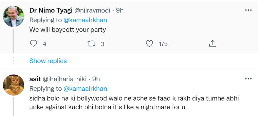 एक यूजर ने तो यह तक कह दिया कि वह केआरके की पार्टी का ही बहिष्कार कर देंगे।