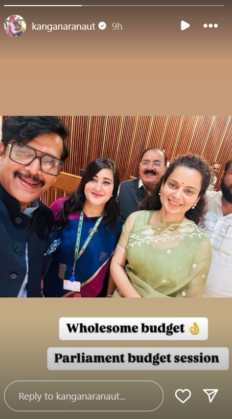 कंगना रनौत (Kangana Ranaut) ने बीजेपी एमपी बांसुरी स्वराज, रवि किशन और बाकियों के साथ तस्वीर शेयर की है। इसके कैप्शन में उन्होंने लिखा, 'होलसम बजट। पार्लियामेंट बजट सेशन।'