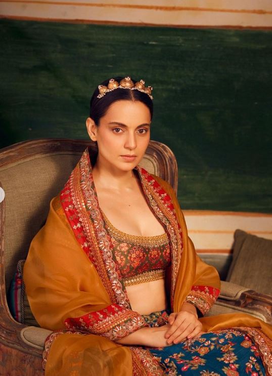 कंगना ने इंस्टाग्राम पर अपनी लेटेस्ट तस्वीरें शेयर की हैं। फोटोज में एक्ट्रेस को हैवी लहंगा-चोली पहने देखा जा सकता है। इसे एक्ट्रेस ने एक दुपट्टे से स्टाइल किया था। कंगना ने अपने ओवरऑल लुक में सबसे ज्यादा जिस चीज को फ्लॉन्ट किया था, वह उनका ट्रेडिशनल हेडपीस था।