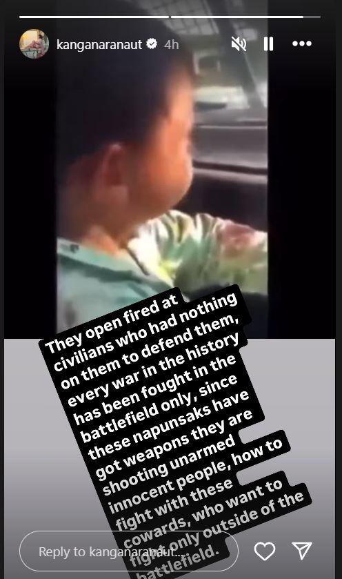 कंगना ने आगे कहा, "इतिहास में युद्ध हमेशा युद्ध के मैदान में लड़े गए हैं। लेकिन अब जब इन आतंकियों के पास हथियार आ गए हैं, वो निहत्थे लोगों पर हमला कर रहे हैं। ये कायर हैं जो लड़ाई में सामने नहीं आते। इससे कैसे लड़ा जाए?"