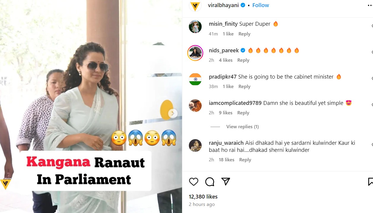 कंगना की नई तस्वीरें देख फैंस ने उनकी तारीफ की है। एक यूजर ने कमेंट किया, 'कोई कुछ भी कहे, कंगना ने अच्छा परफॉर्म किया।' एक ने कमेंट किया, 'ये कैबिनेट मिनिस्टर होंगी।'